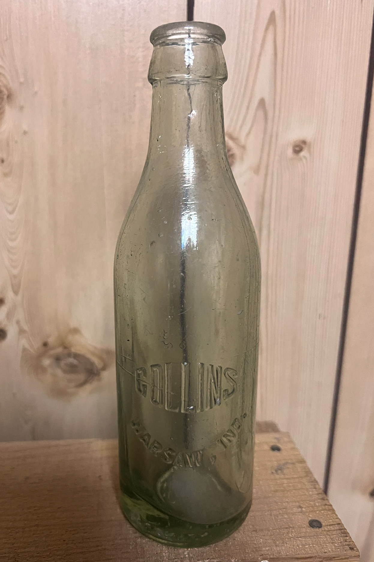 Bottle Type: Soda, crown top. Embossing: COLLINS / WARSAW, IND. Glass Maker: Other Marks: Notes: Photo Credit: Indiana Bottle Collectors