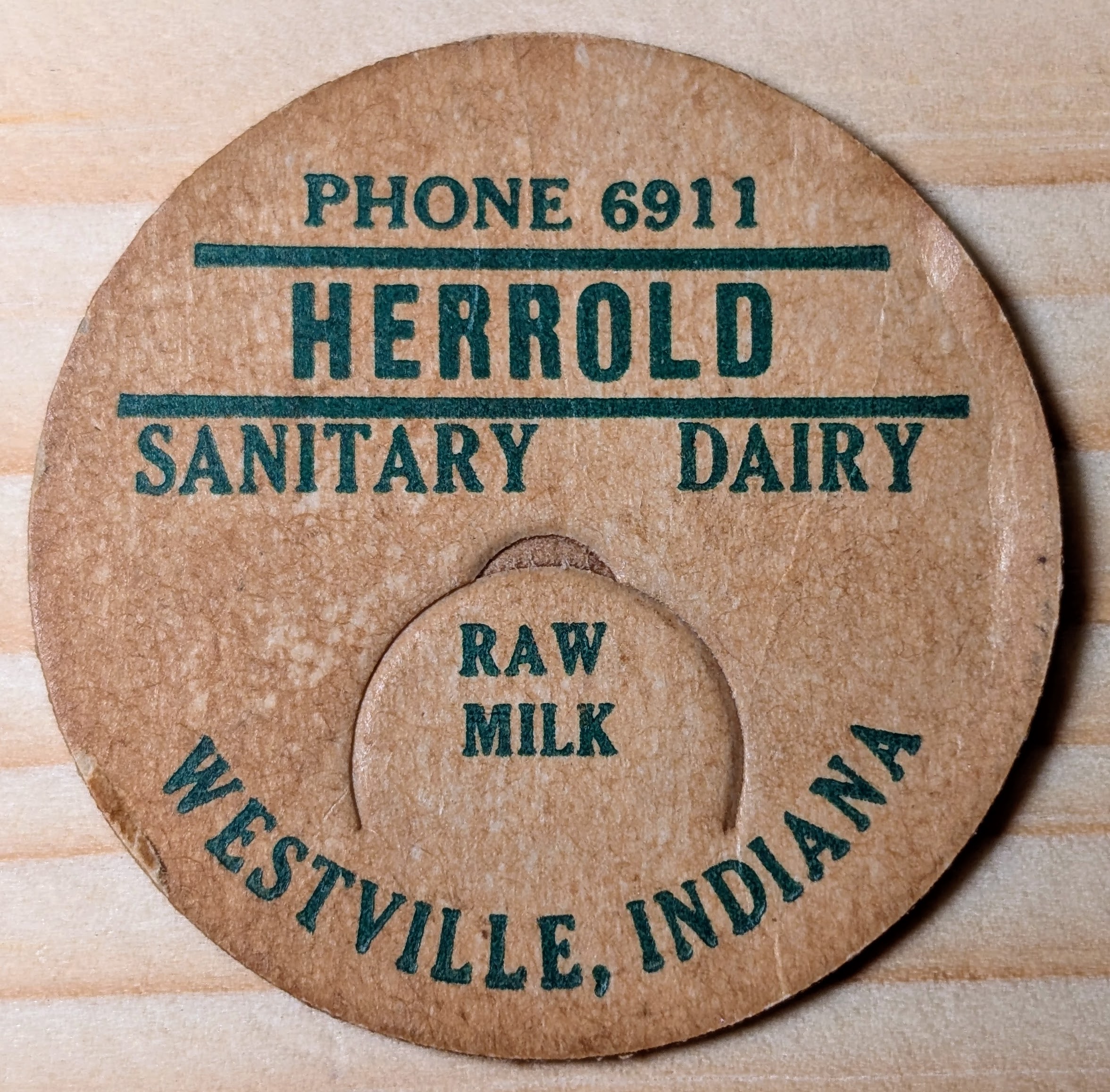 All we have from this dairy is a milk cap. We’re not sure if Herrold ever had branded bottles made, or if they used plain, unmarked bottles with cardboard caps. We need to research this one more since information seems to be scarce.