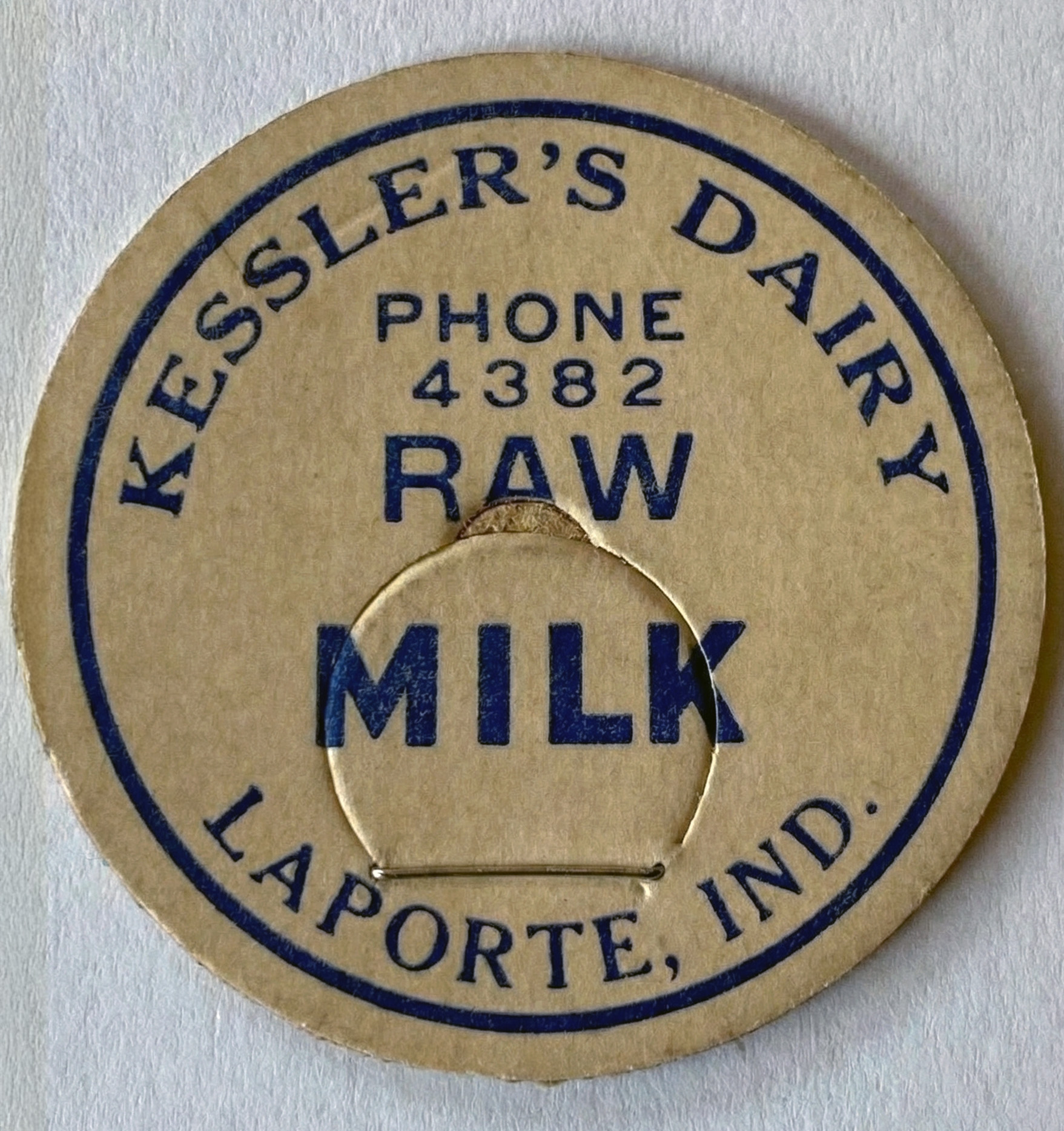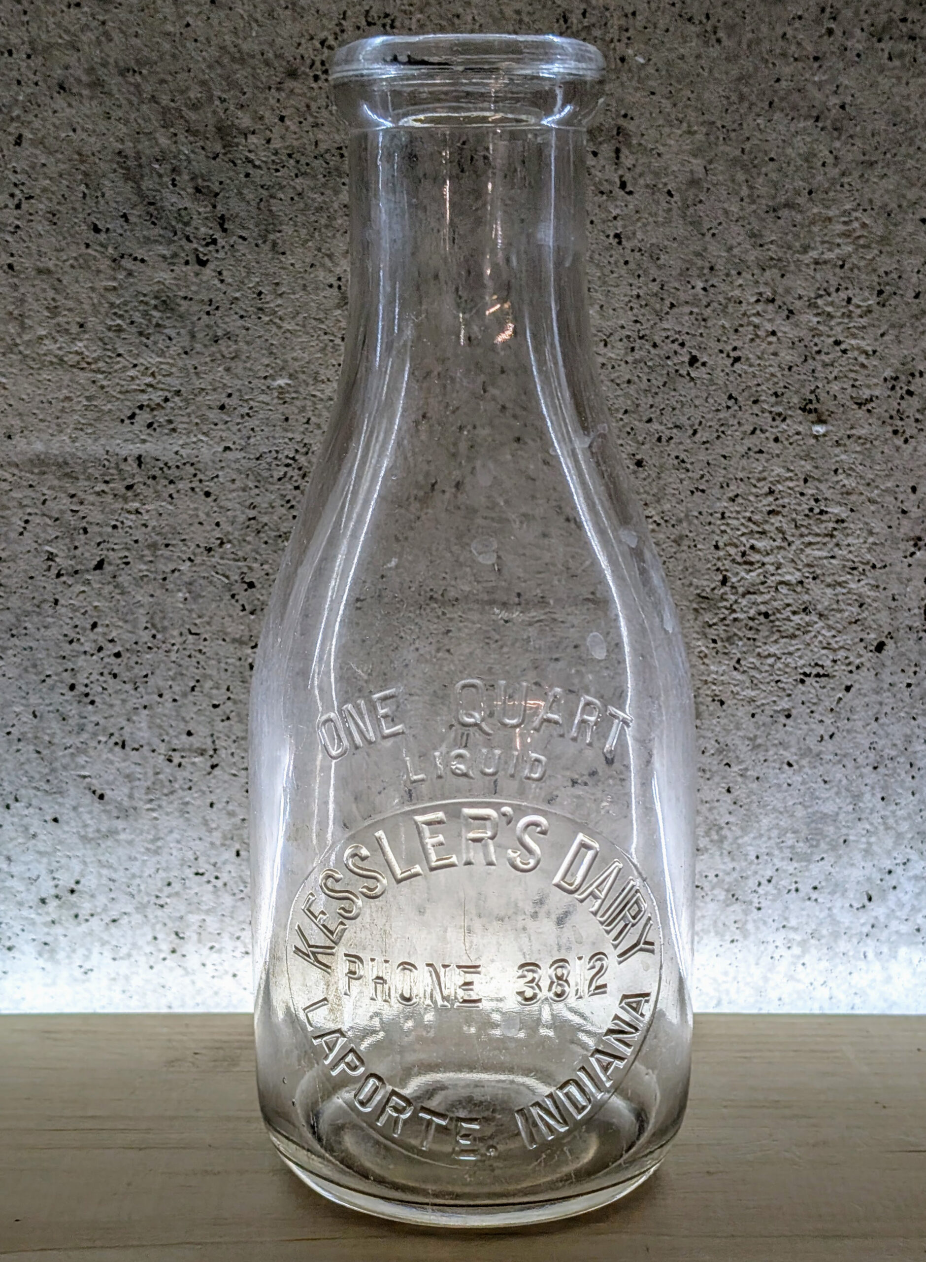Embossing: KESSLER’S DAIRY / PHONE 3812 / LAPORTE, INDIANA