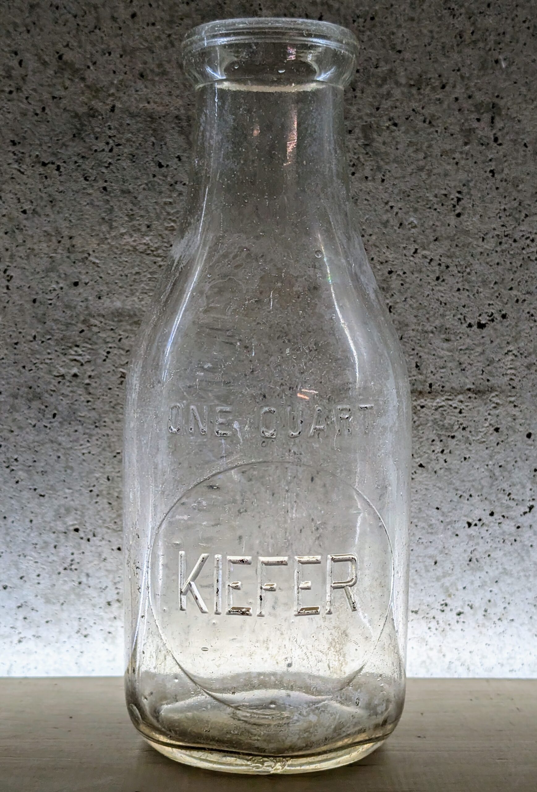 Bottles embossed with just a surname, especially those with no first or middle initial or town name, can be very tricky to accurately place. A few examples of this “Kiefer” quart milk bottle were dug in northern Indiana by Chris Jordan, a major contributor to this site.