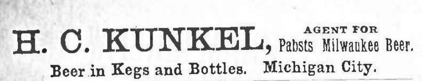 1905 — Kunkel Henry C (Louise), agent Pabst Brewing Co, also manufacturer of pop and soft drinks, 140 state road or E Eighth, home is the same.