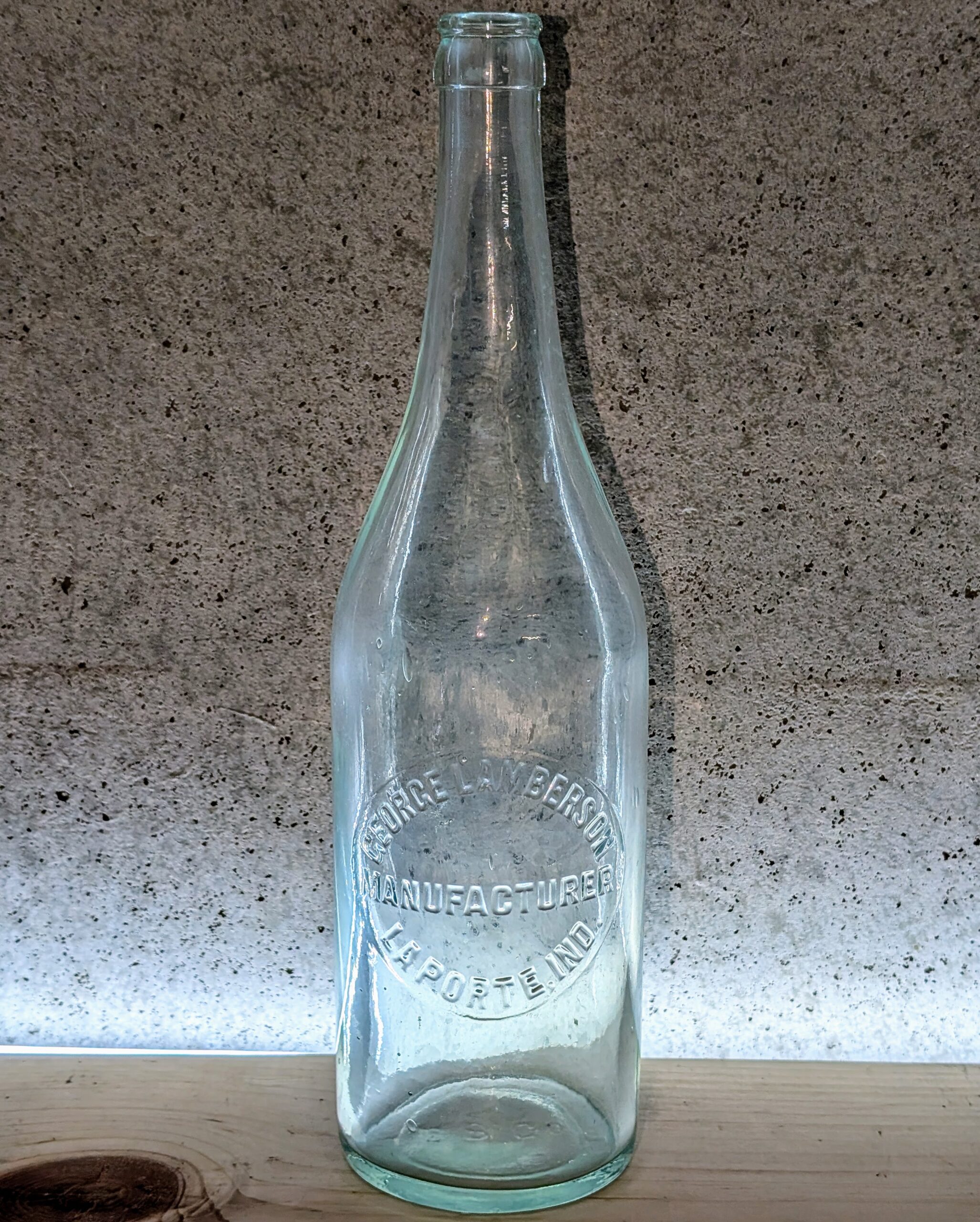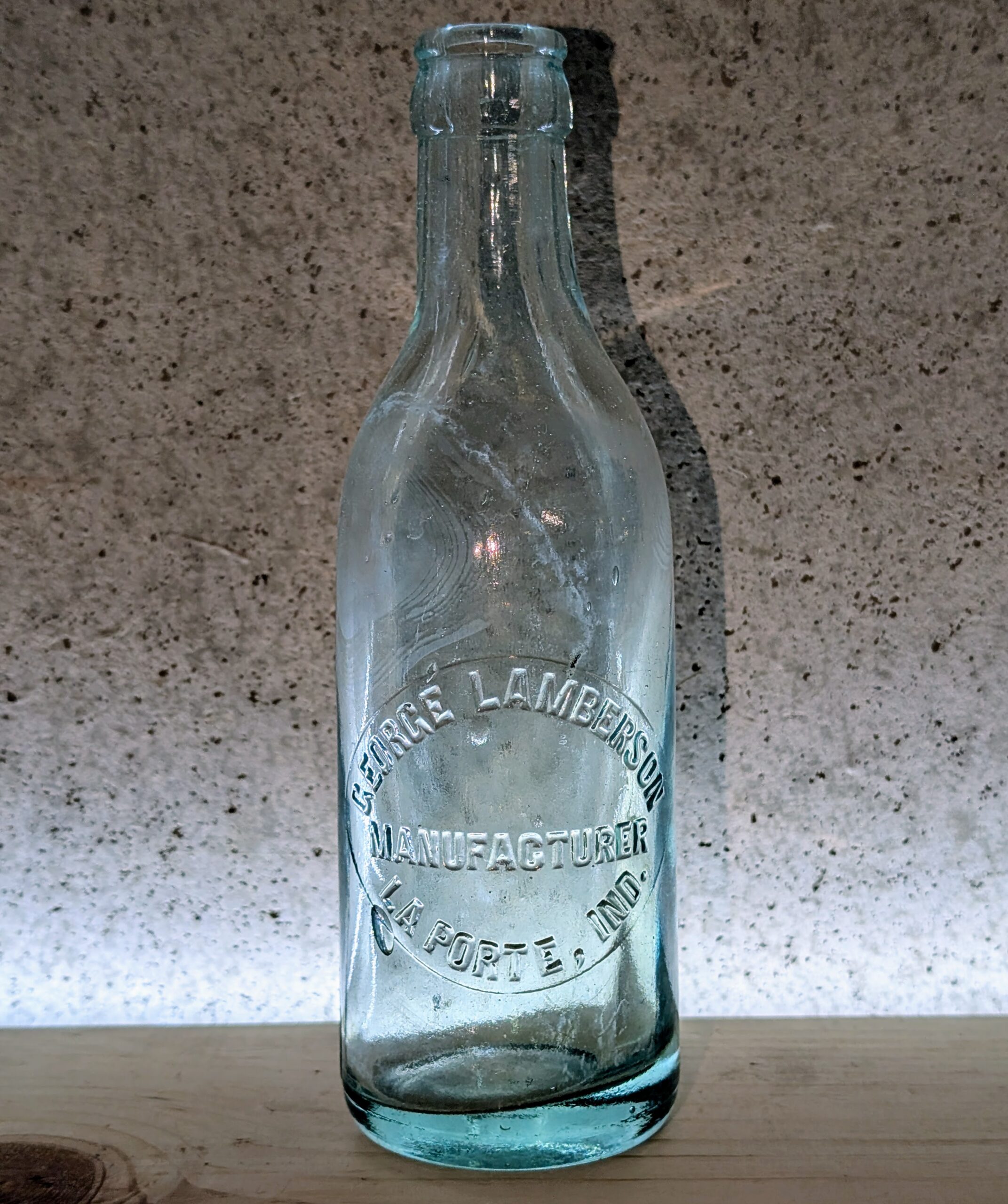 Before entering the bottling works business, he was involved in the confectionery and soda trade, as noted in the La Porte City Directories from 1904 through 1910. His Hutchinson bottle most likely predates 1910, as Hutchinson bottles were largely phased out by about 1912 when crown-top bottles became the sanitary standard.