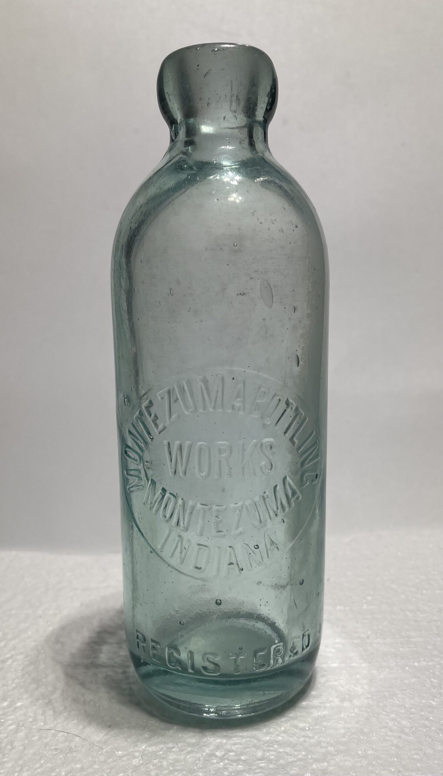 Embossing: MONTEZUMA BOTTLING / WORKS / MONTEZUMA / INDIANA / REGISTERED