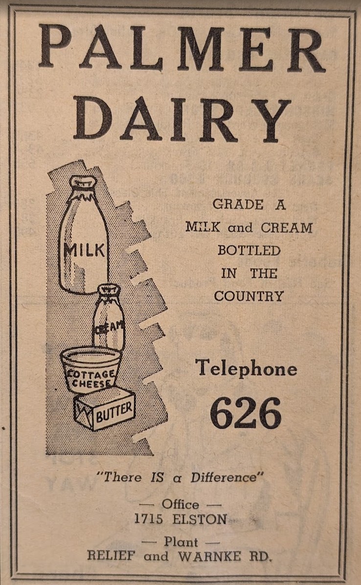 1947 & 1948 — Palmer Dairy, office at 1715 Elston, phone #626, plant at Relief Rd. and Warnke Rd. (now 9030 E Hwy 212)
