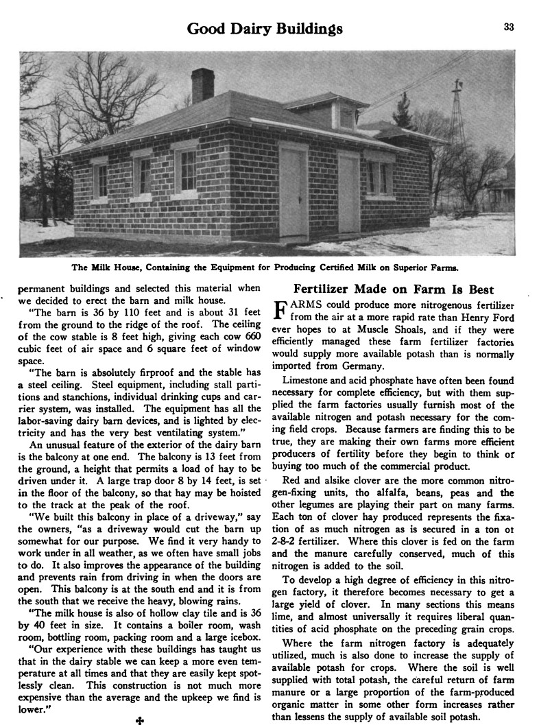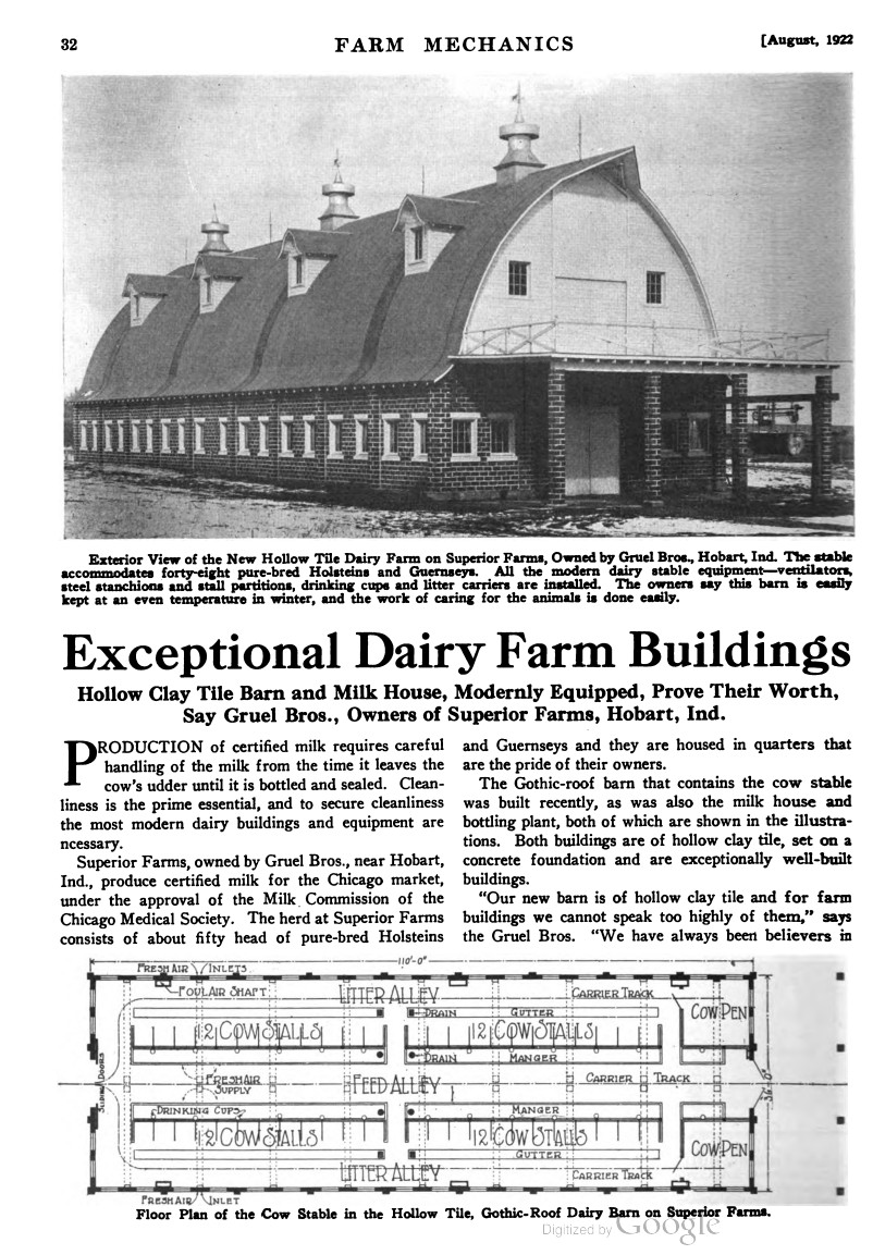 “The Gruel Bros. expect to be ready to supply certified milk from their dairy on the John Gruel farm by Feb. 1. There never has been any certified milk produced by dairymen in Indiana, so this farm will be the first. The Gruel farm is registered and will be known as ‘Superior Farm.’ Gruel Bros. are equipped to supply about 800 quarts of certified milk daily. This kind of milk retails at 25 cents per quart. Most of their supply will be sold in Chicago.”
