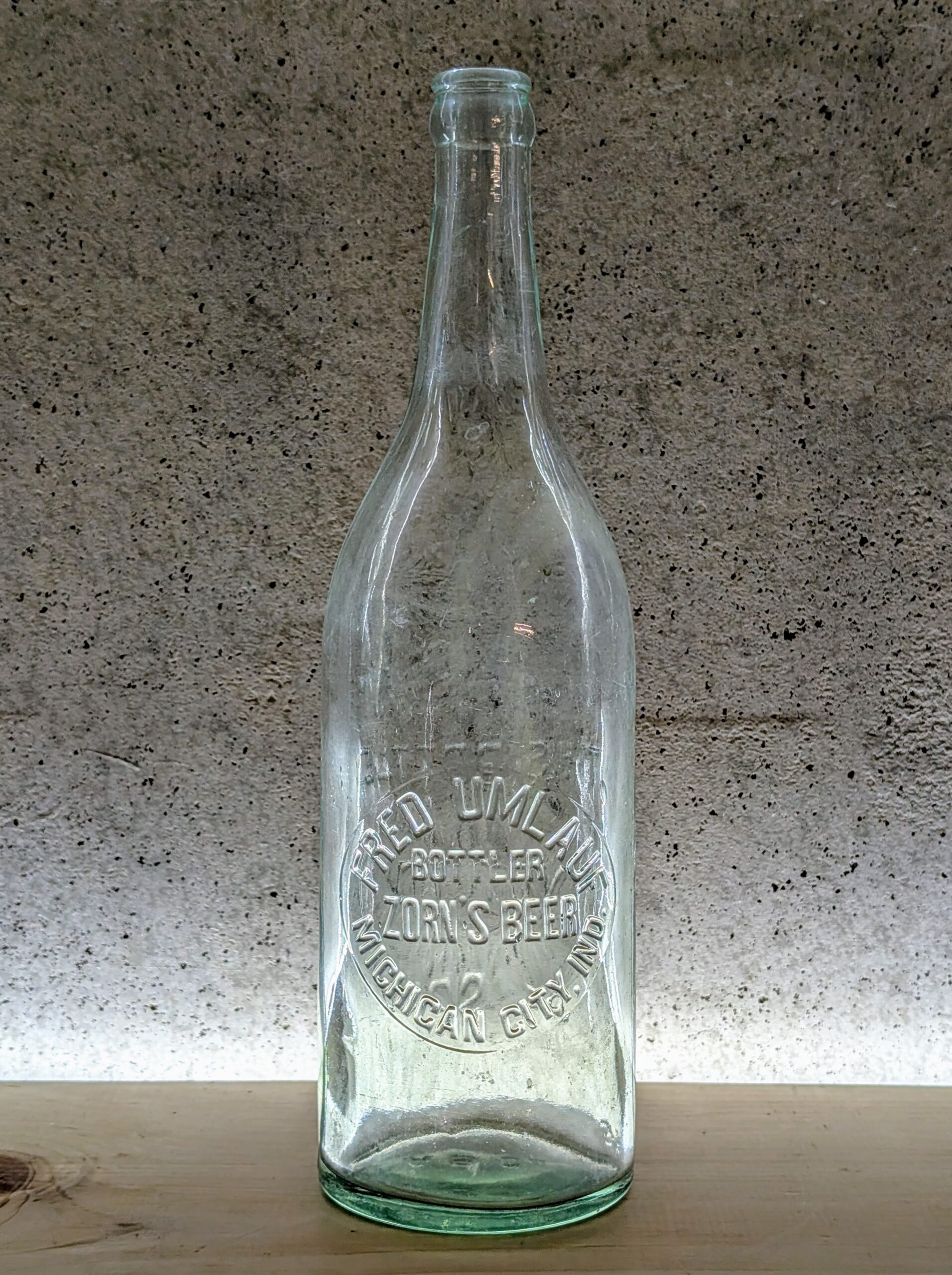 Embossing: FRED UMLAUF / BOTTLER / ZORN’S BEER / MICHIGAN CITY, IND.